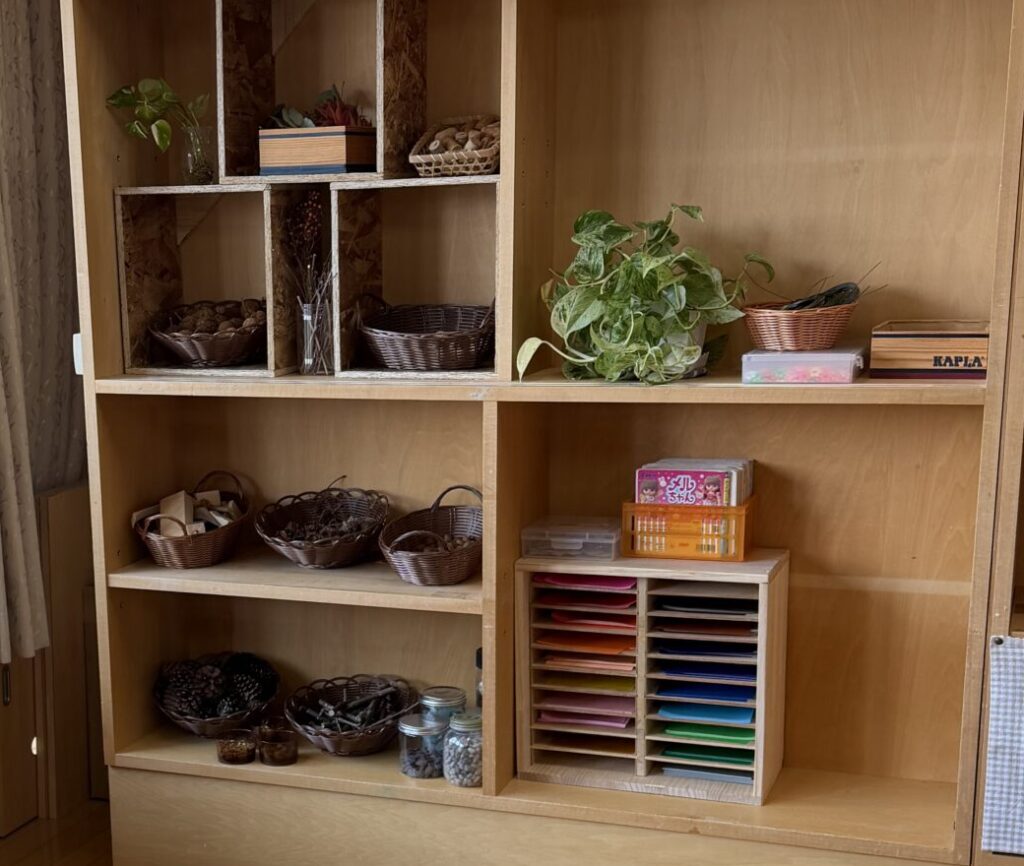 こちらの棚は自然の素材がいっぱい!